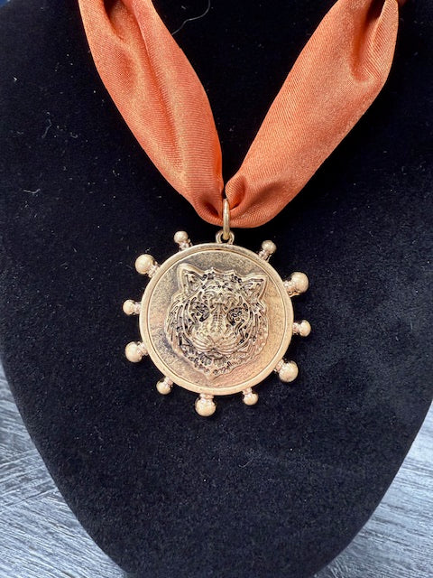 Burnt Orange Tiger Scarf Necklace