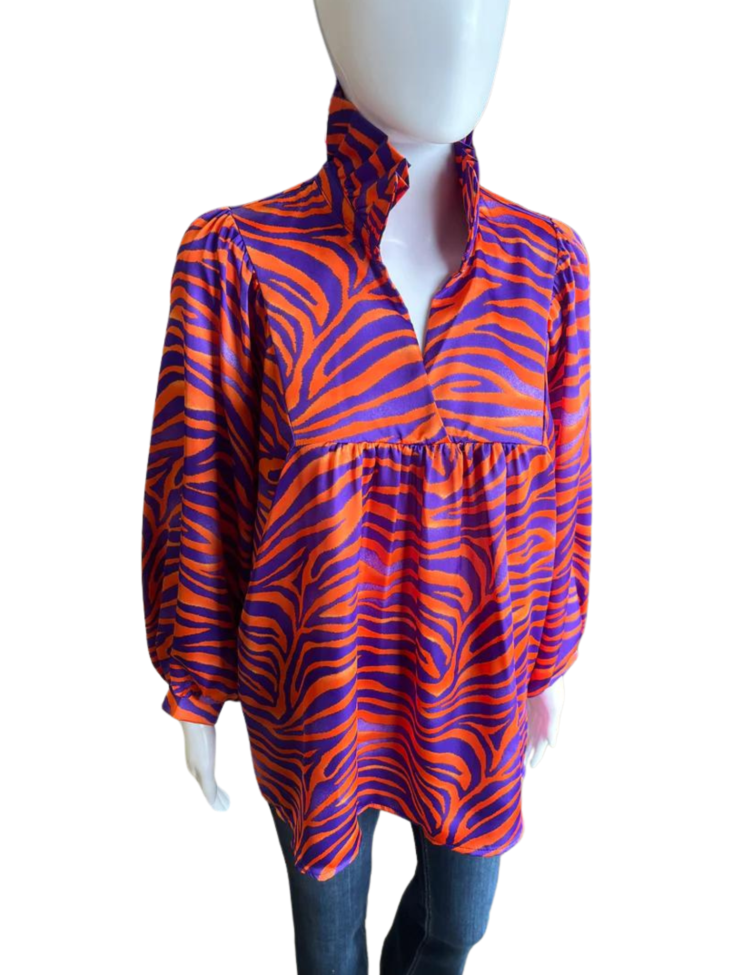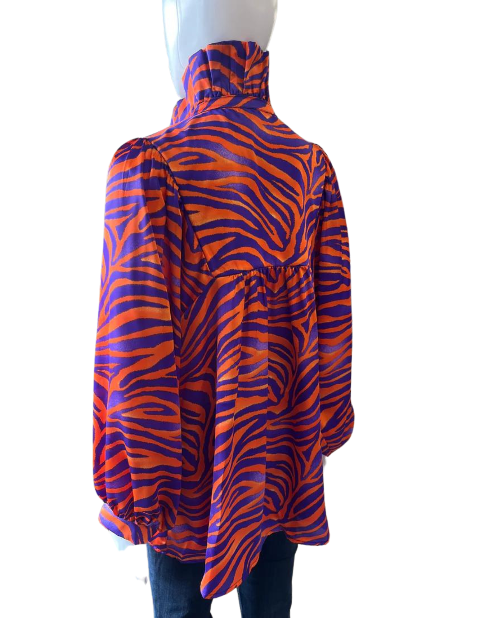 The fight tigers animal print high neck ruffle top is an awesome gameday top!