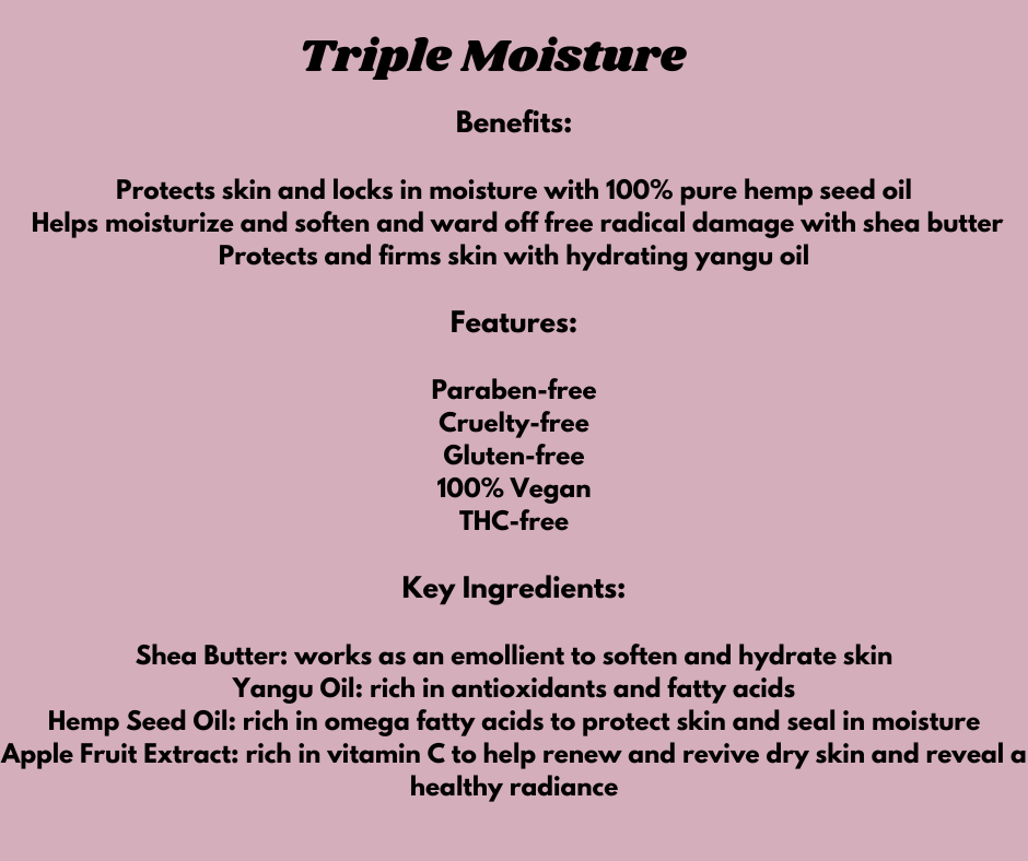 Hempz Triple Moisture Herbal Whipped Body Creme provides deep 24-hour moisturization that softens even the driest skin. Enriched with 100% Pure Natural Hemp Seed Oil and fortified with their exclusive all day Triple Moisture Complex.