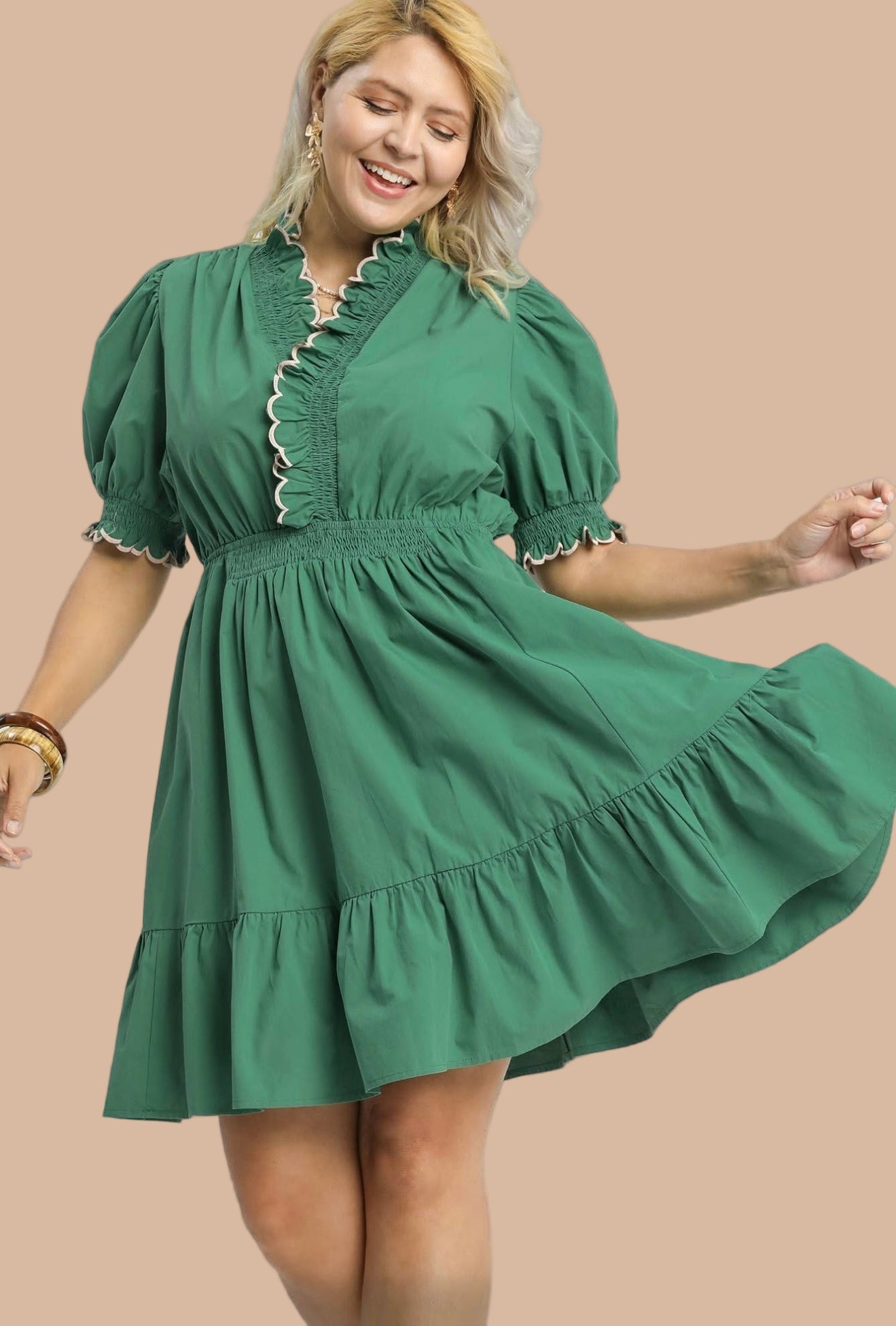 Elevate your wardrobe with the Vintage Fern Scalloped Dress, featuring a delicate ruffle neck that adds refined charm. This dress offers a flattering silhouette with scalloped edges that enhance its vintage-inspired appeal. Perfect for both day and evening occasions, its sophisticated design ensures timeless elegance and expert craftsmanship in every detail.